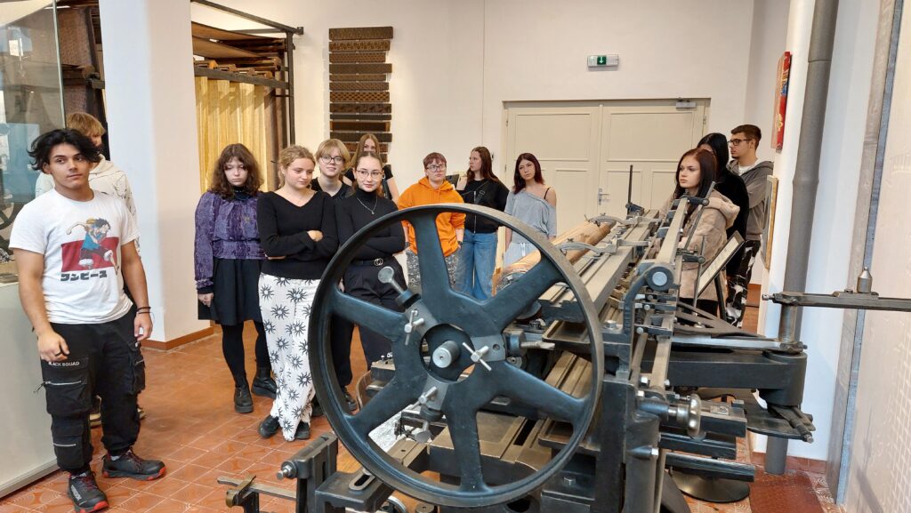 Žáci se seznámili s tím, jak se vyráběly různé typy tiskových forem, jakými způsoby se textil dříve potiskoval, jaké stroje a principy tisku se používaly a jaké druhy textilu se potiskovaly. Prohlédli si původní stroje, doplněné množstvím vzorníků a látek a viděli modrotiskovou dílnu. Obdivovali jsme množství tiskových forem i umění designérů, rytců a vzorkařů.