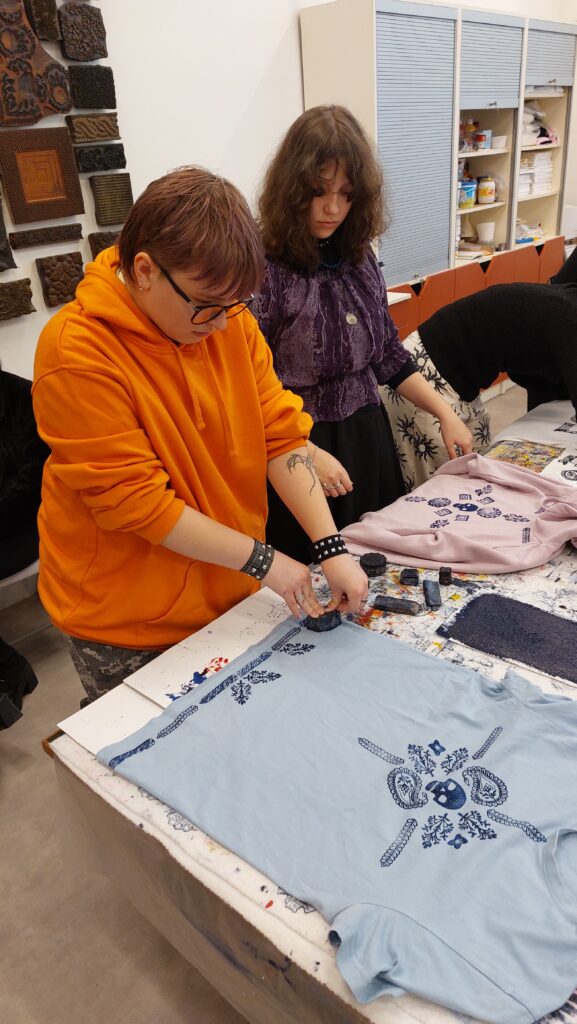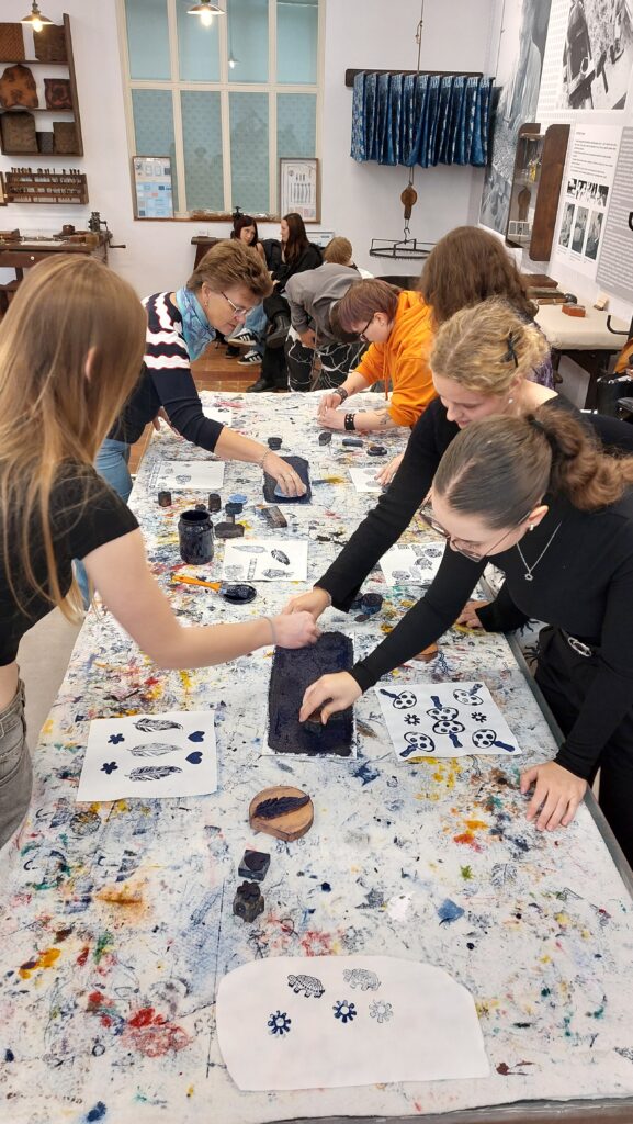 Pro žáky byla připravena také malá tiskařská dílna, kde si mohli pomocí ručně vyráběných forem ozdobit látku podle vlastní fantazie.
