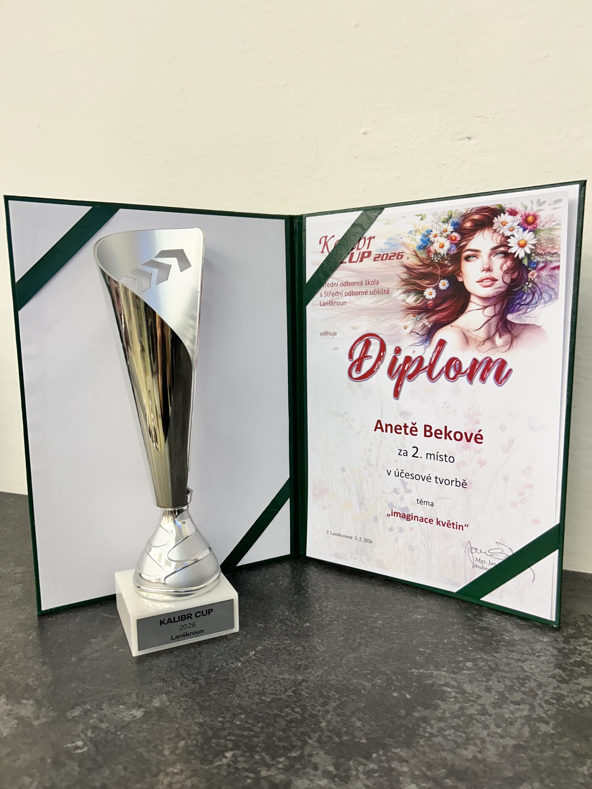 Na prestižní středoškolské soutěži Kalibr cup 2026 v Lanškrouně (5.2.) vybojovala Aneta Beková z 2. ročníku obor kadeřník ve Velkém Poříčí skvělé 2. místo.