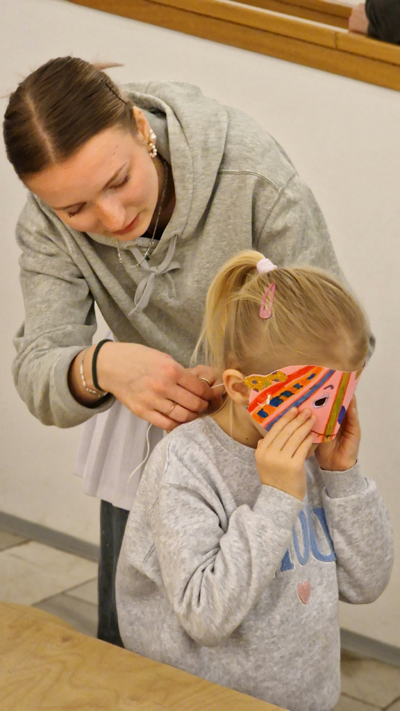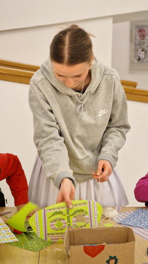„Děvčata si připravila výrobu masek podle zadání určeného hodem kostkou. Ze začátku to vypadalo, že děti zadání úplně nepochopily, ale společnými silami se nám je podařilo navést správným směrem a vznikly opravdu moc hezké masky. Děvčata musím velmi pochválit. Po páteční vernisáži jsem bohužel přišla o hlas, takže jsem mohla jen občas doplňovat, a hlavní organizace tak zůstala na nich. Měla jsem z nich velkou radost“, říká Veronika Ansorge z GVUN.
