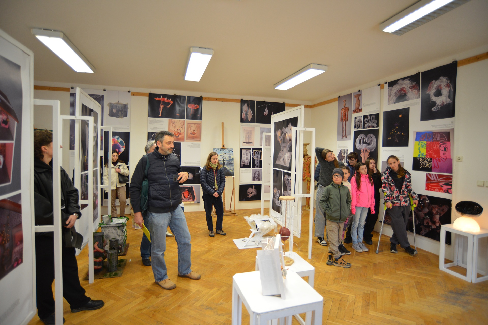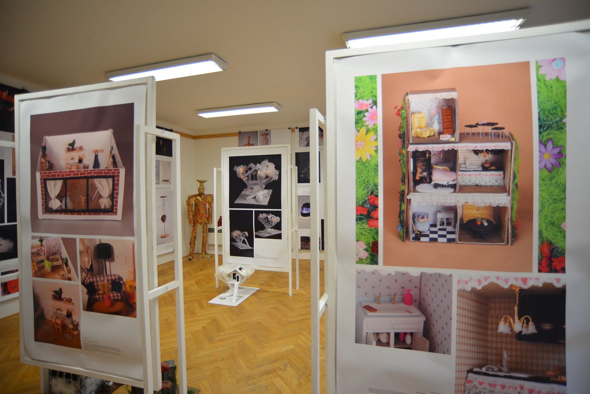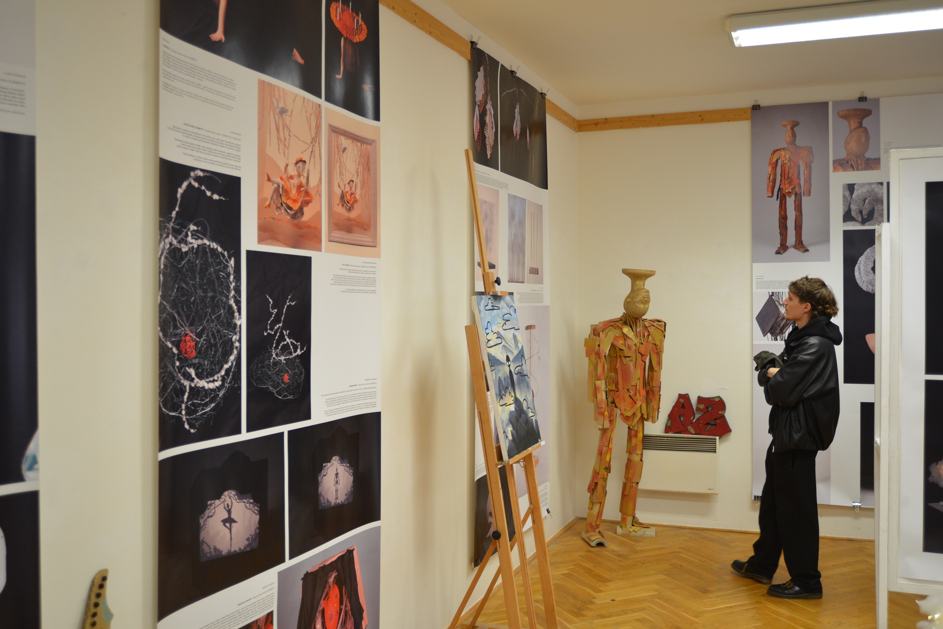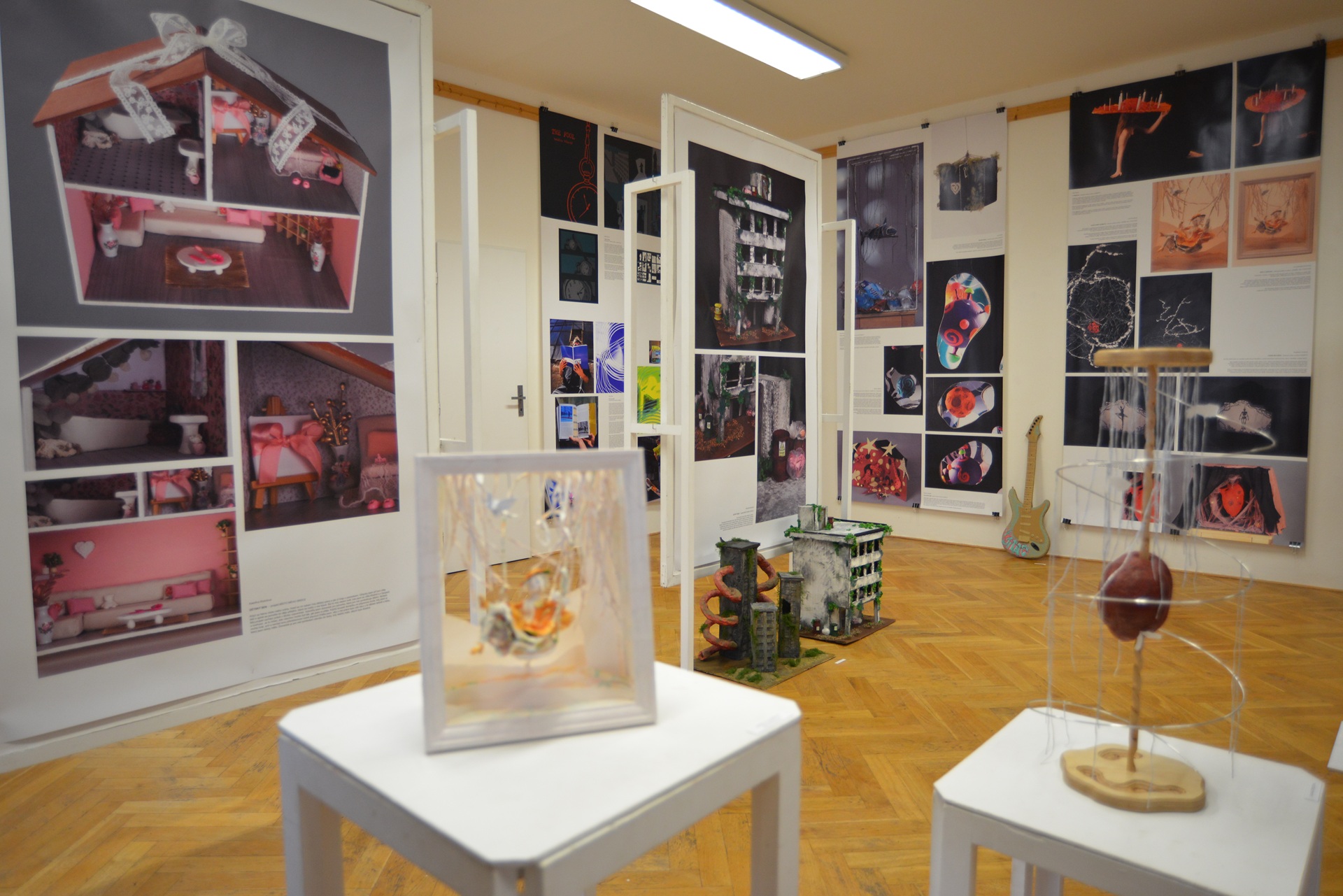 Aktuální expozice s názvem Prostor pro tvorbu představuje výběr prací studentů grafického designu za poslední dva roky. K vidění jsou fotografie, prostorové objekty i maturitní realizace. Zastoupeny jsou všechny ročníky – od prvních výtvarných krůčků až po hluboká osobní témata maturitních ročníků. Nechybí ani čerstvé klauzurní práce na téma Vznášet se v prostoru či Tajemství.