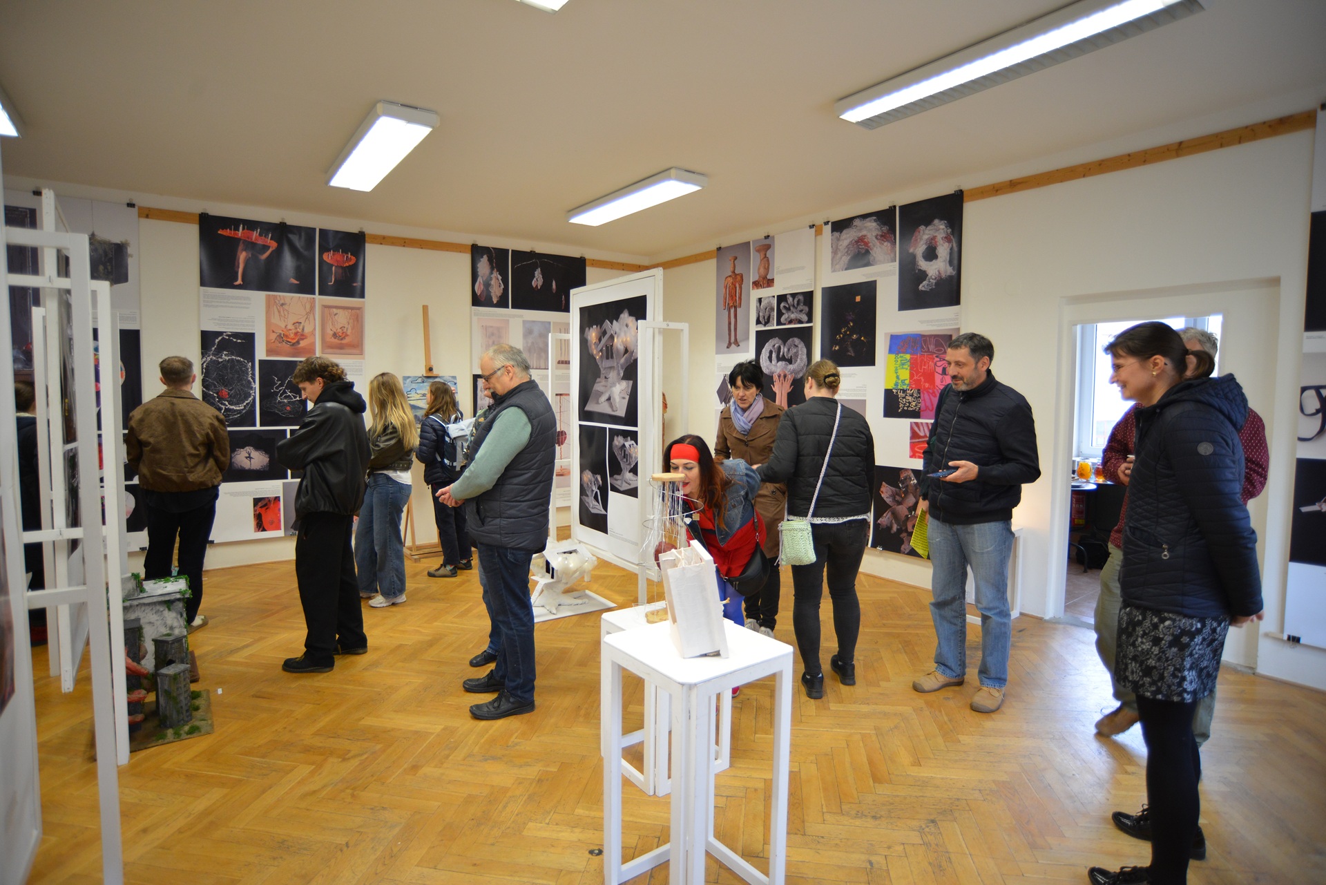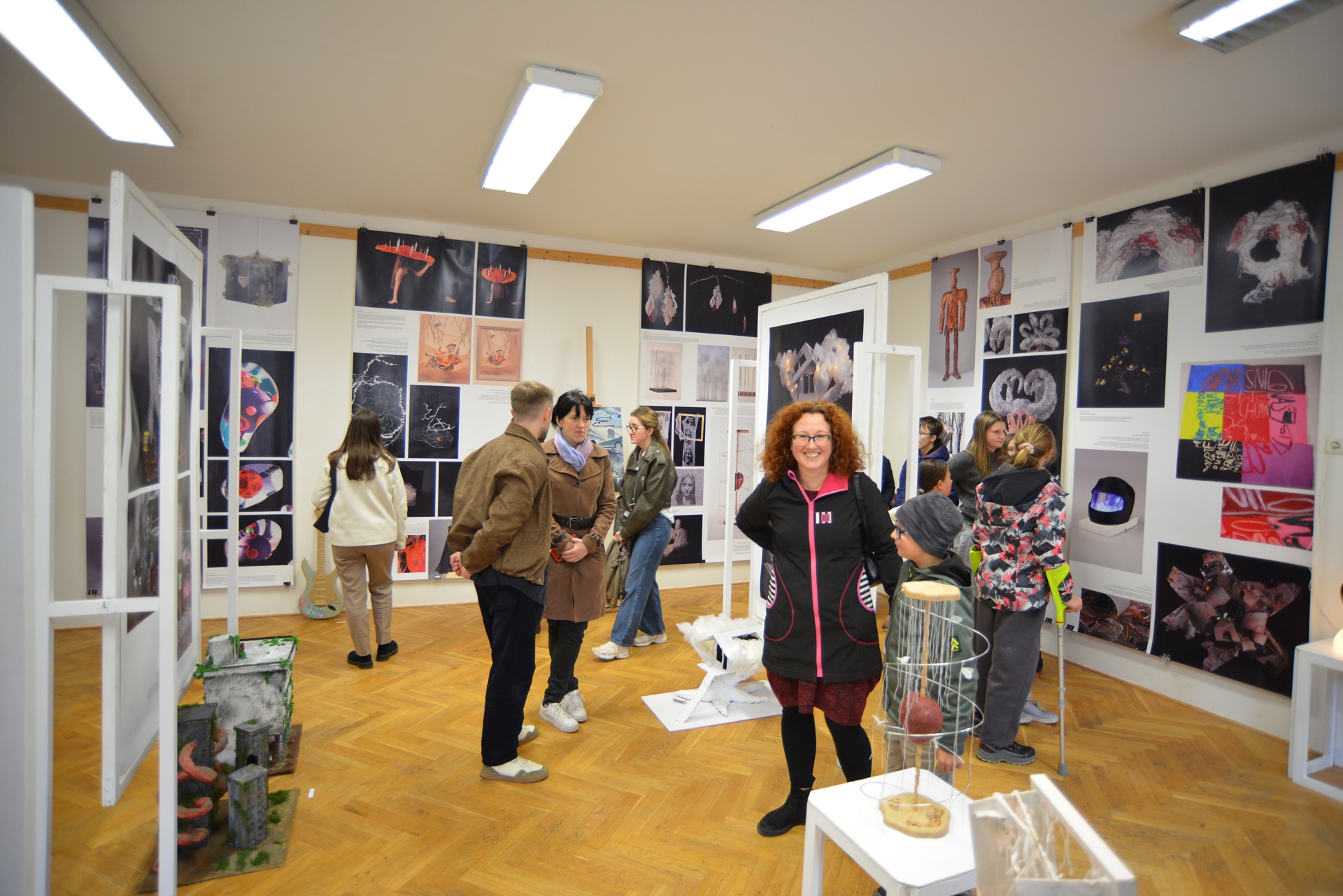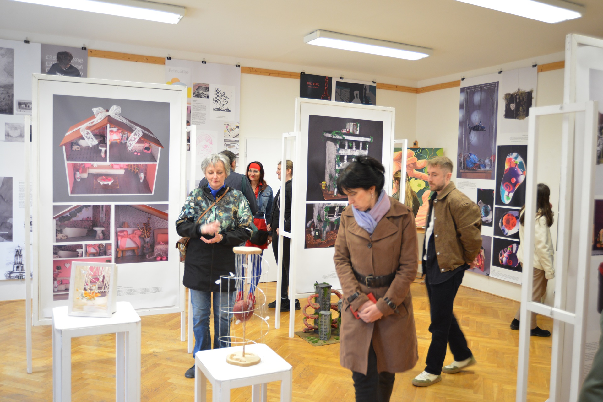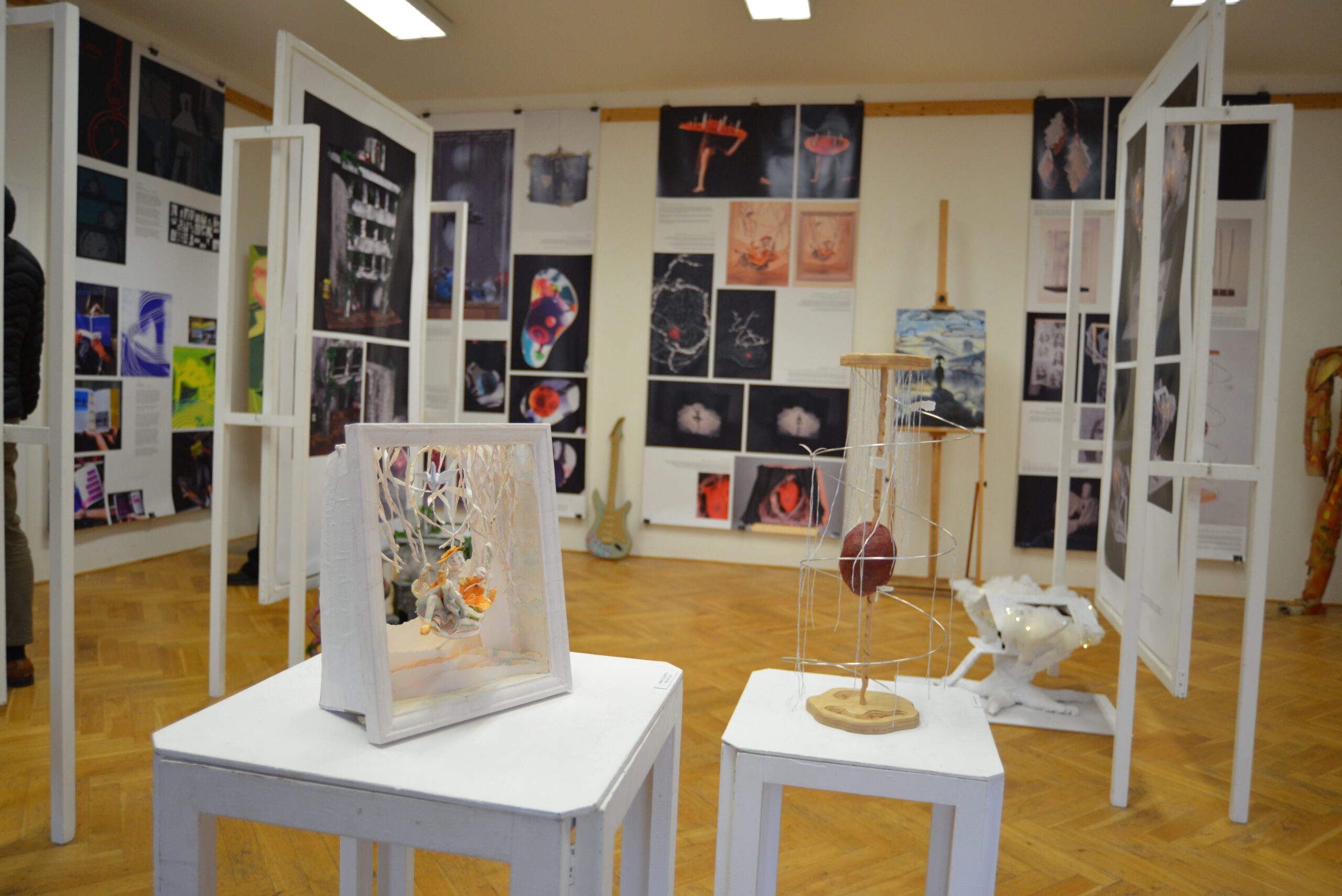 Aktuální expozice s názvem Prostor pro tvorbu představuje výběr prací studentů grafického designu za poslední dva roky. K vidění jsou fotografie, prostorové objekty i maturitní realizace. Zastoupeny jsou všechny ročníky – od prvních výtvarných krůčků až po hluboká osobní témata maturitních ročníků. Nechybí ani čerstvé klauzurní práce na téma Vznášet se v prostoru či Tajemství.
