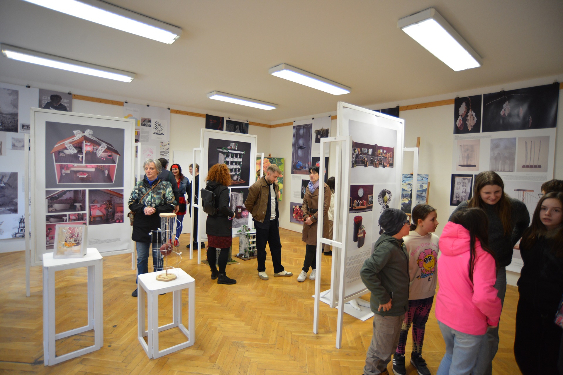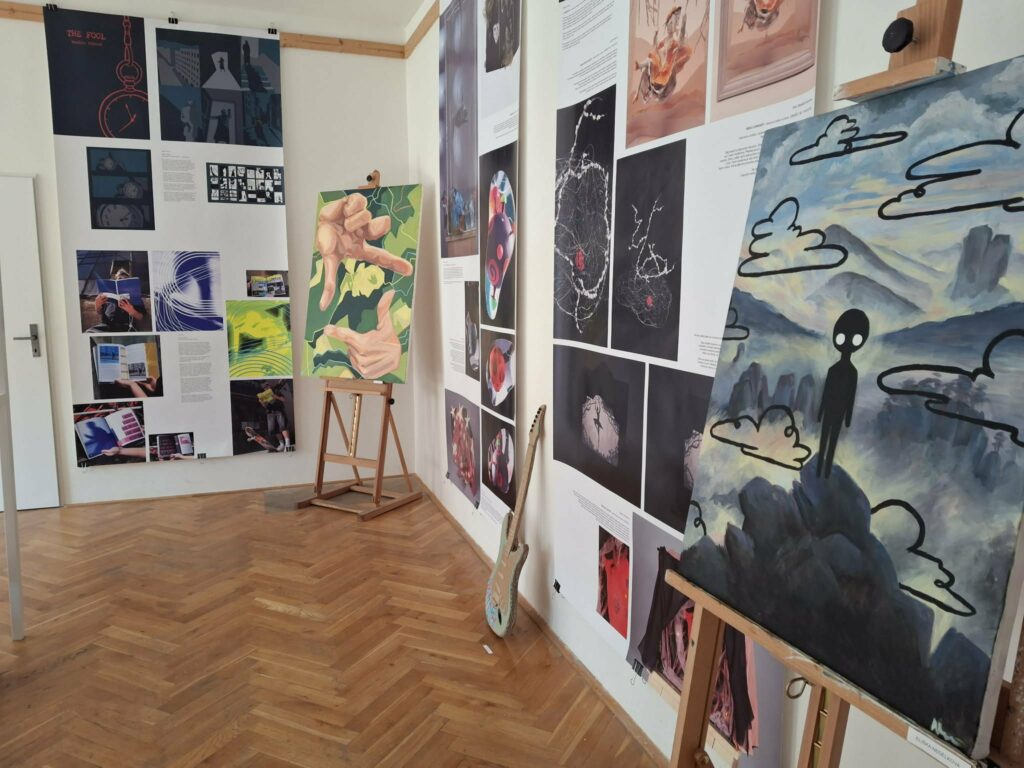 Představeny jsou práce různých ročníků, od jednodušších cvičení až po osobní témata a výstupy inspirované soutěžemi. Nechybí ani letošní klauzurní práce na námět Vznášet se v prostoru nebo Tajemství. Autoři zde využívají především ruční tvorbu a hledají vlastní výtvarný výraz.