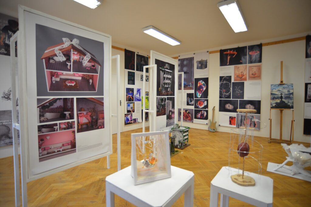 Důležitou součástí výstavy jsou projekty maturitních zkoušek, ve kterých si studenti volí témata, jež jsou jim blízká, a mohou tak nejlépe vyjádřit svůj osobní přístup ke zpracování i výtvarnou kreativitu. Za každým výsledkem stojí delší postup: hledání nápadu, skicování, promýšlení i samotné zpracování. Právě tento proces je pro studenty zásadní a rozvíjí jejich tvořivost.